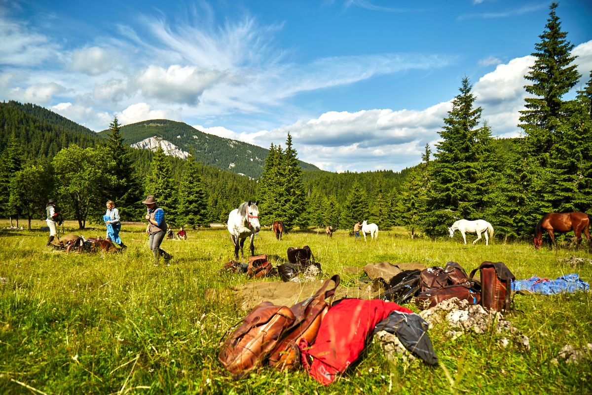 Through the unique mountain world of the Eastern Carpathians, far away from civilization. You explore the volcanic Harghita Mountains along the main ridge of the Carpathians with its untouched primeval forests, species-rich flowering herb meadows and endless pastures. The route leads around St. Ana's Lakelake, the only volcanic crater lake in Eastern Europe. The horses are sure-footed, relaxed Lippizander Mix horses that live outside all year round. Luggage is transported by off-road vehicle and the horses are camped in the middle of nature at beautiful campsites, far away from civilization. Romantic evenings around the campfire with guitar music and delicious, typical local meals prepared over the fire round off this very special trail ride. The Carpathian Adventure Trail is just the thing for anyone looking for a trail with a real sense of adventure in Europe.