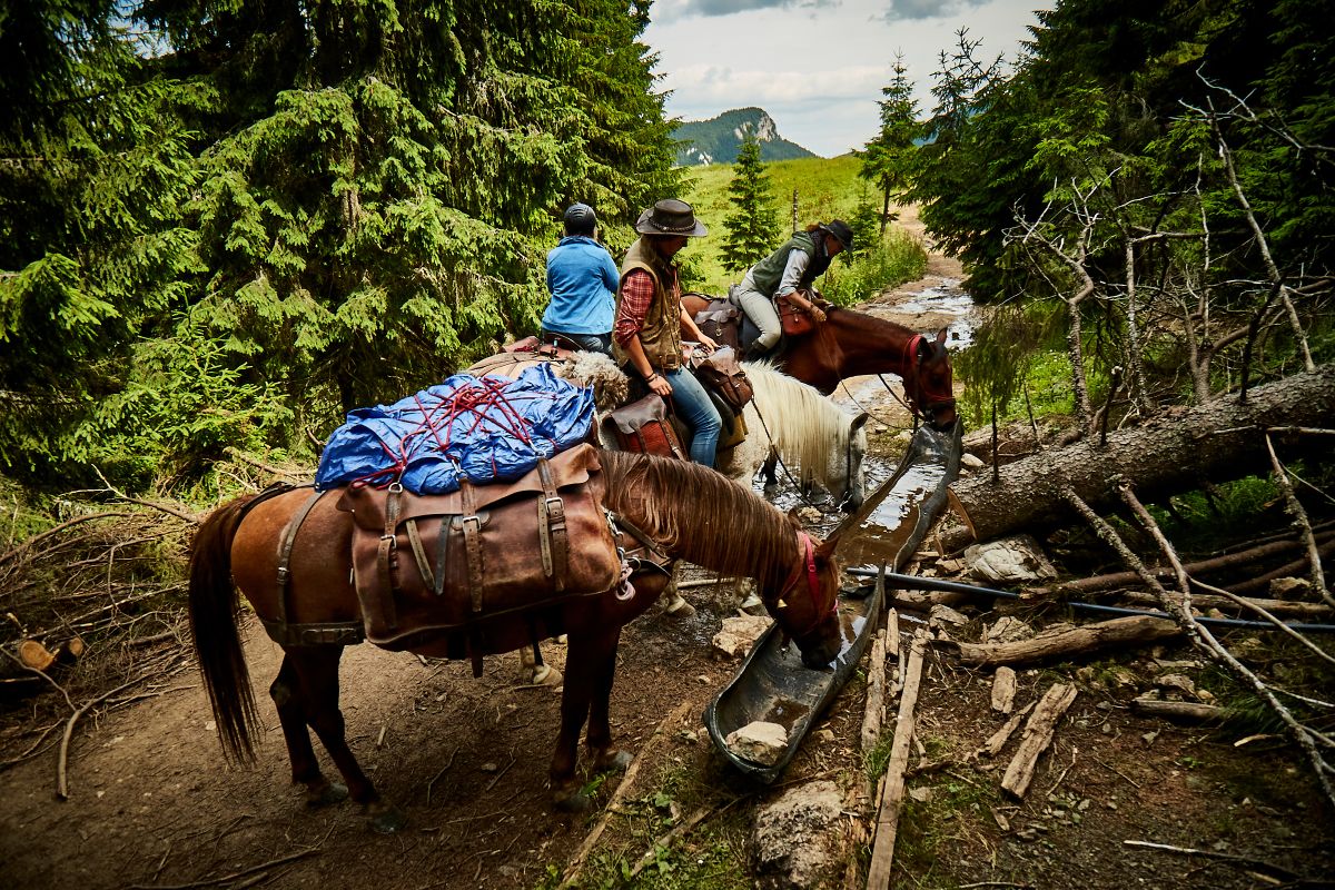 Day 2: After a hearty breakfast, you will set off on a short test ride to familiarize yourself with your horse and equipment. The trail takes you through mountain streams and across idyllic meadows to the summit of "Magas Bükk", where, after a lunch break, we return through spruce forests to our home at farm to ride. Afterwards, you will receive brief instructions on setting up the tents before a bathing tub filled with salt water invites you to relax. From there you can enjoy a magnificent mountain panorama with a glowing red sunset in good weather. (approx. 2 hours riding time).