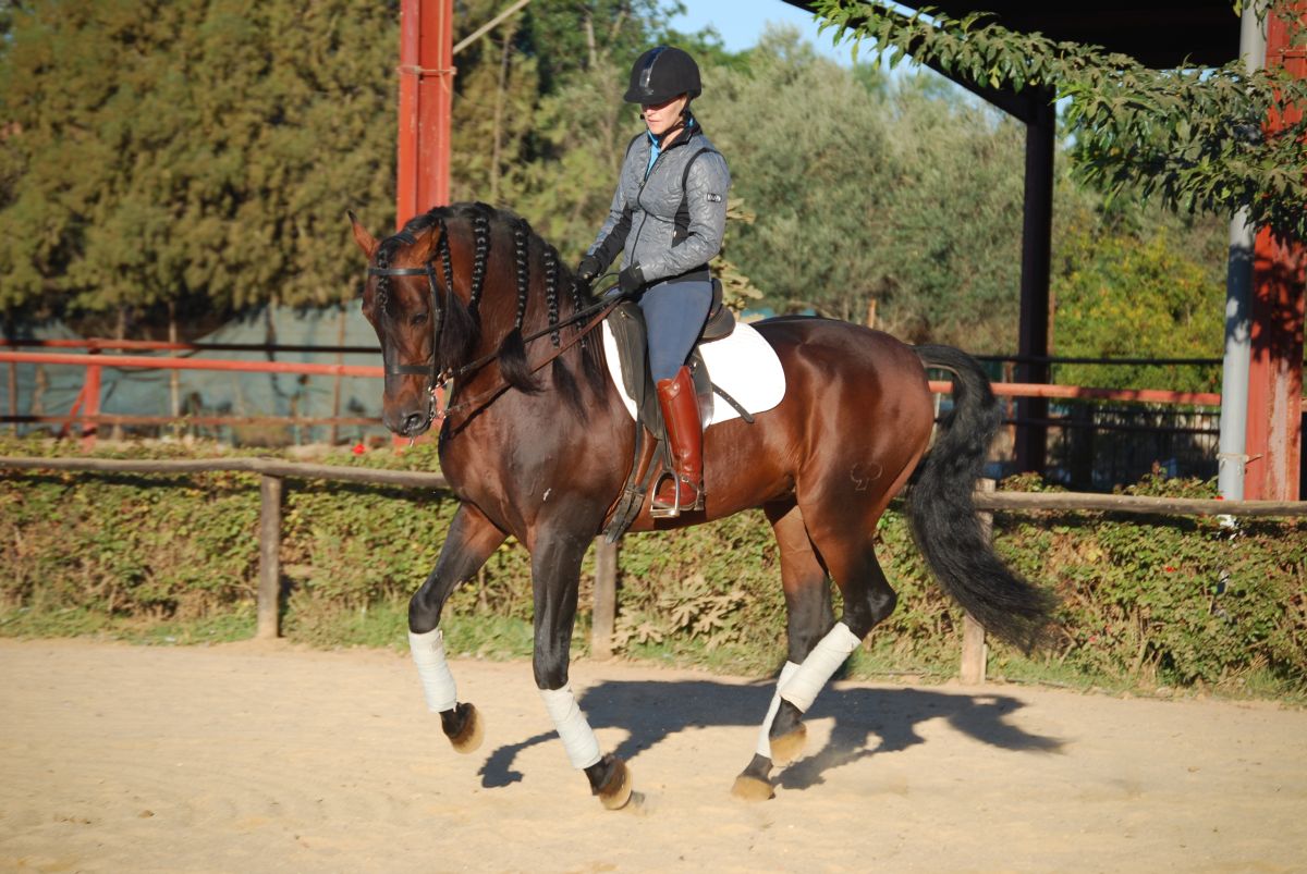Day 3: Early breakfast and pick up at the hotel at 8:30 am for the one and a half hour drive to Jerez de la Frontera in the province of Cádiz. Jerez is internationally known for its production of brandy and sherry. However, the main attraction of the day is the visit to the Real Escuela Andaluza del Arte Ecuestre, a riding performance entitled “How the Andalusian Horses Dance” (entrance fee: €27, not included). Here you will have the pleasure of seeing the magnificent Andalusian stallions at their best, in the stunning setting of the 18th-century palace and indoor riding school. You will see piaffes and passages, courbettes and caprioles in a spectacle of light, music and color that can only be compared to the famous Spanish Riding School in Vienna. Fernando is well known at the riding school and is good friends with world-famous riders. Vivi trained there for four years and performed in the show frequently. Return to the hacienda for lunch, followed by afternoon dressage lessons.