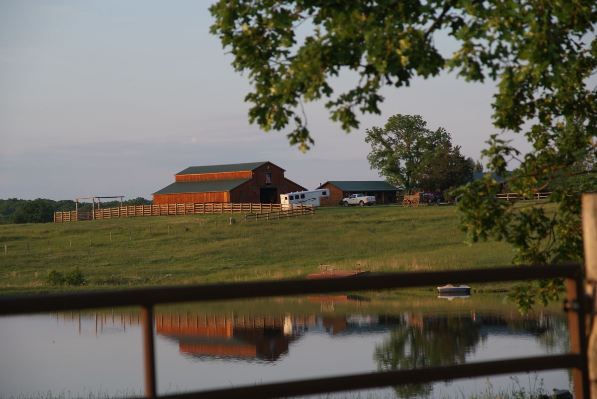 There is a double room in the main house of the ranch. It has a queen-size bed and a private bathroom with a shower. No TV, but you are welcome to watch TV in "The Great Room". There is a 2-bedroom log cabin for guests, separated from the house and built from cedar trunks, decorated with a cowboy motif. The hut can accommodate a maximum of 7 people, a group or two groups can each take a bedroom. One room has 1 queen bed and the other room has 2 double beds. In the living room there is also a single sofa bed. The log cabin is equipped with a full kitchen and cable TV. Breakfast and lunch as well as a barbecue evening are included. Additional dinners are not included: Bourbon has many local restaurants near the ranch that your hosts can recommend for you, or you can cook yourself. Bourbon has a nice grocery and deli that is open until 9:00 p.m. There is a 6-person hot tub where you can relax when you are not riding. WiFi is available at the ranch. On cool evenings, gather in front of the fireplace. Enjoy the view of the big lake from your veranda, a very romantic setting for special occasions. If you want to go out in the evening, you can go to the cinema or a bar with live music (bluegrass and western country music) in the nearby towns. If you want to visit some sights during or before your ranch stay, there are antique shops with quirky vintage items in the city of Cuba (20 km) and Rolla (30 km). There is a winery in the region and the Onondaga Cave is 25 minutes´ drive from the ranch - guests´ favorite! The Meramec Spring Park is beautiful in spring and has a trout farm!