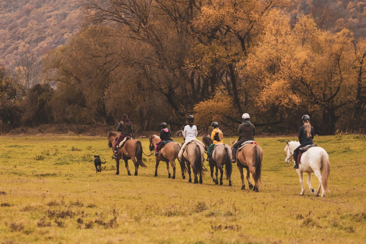 Day 2: After breakfast, you will set off on a trial ride. The route takes you into the surrounding mountains, where you can already enjoy the first enchanting views. At lunchtime, you will take a break and enjoy a picnic with a view of the Sajó, which winds its way picturesquely through the valley The way back leads along small, romantic paths, past streams, forests, and wide meadows. On the last stretch down to the valley, you have to lead the horses down a short, steep section of the trail before returning to the farm. In the evening, you will sit down together again for dinner and discuss the most important impressions of the day. Afterwards, the sauna and hot tub will be ready for you. As the coming days will be long and physically demanding, you can really pamper yourself here once again. Riding time: approx. 4–5 hours, on foot: approx. 30 minutes.