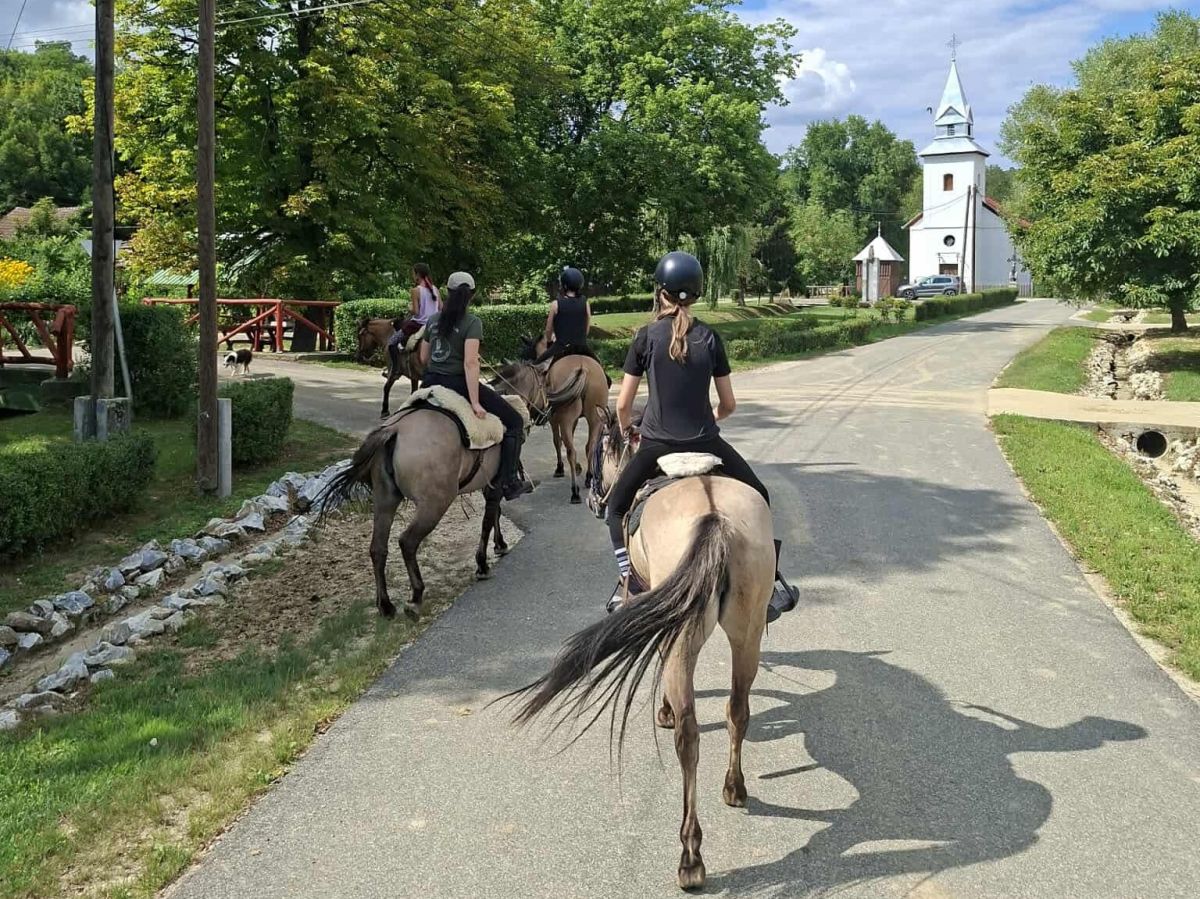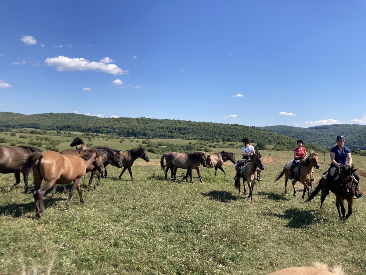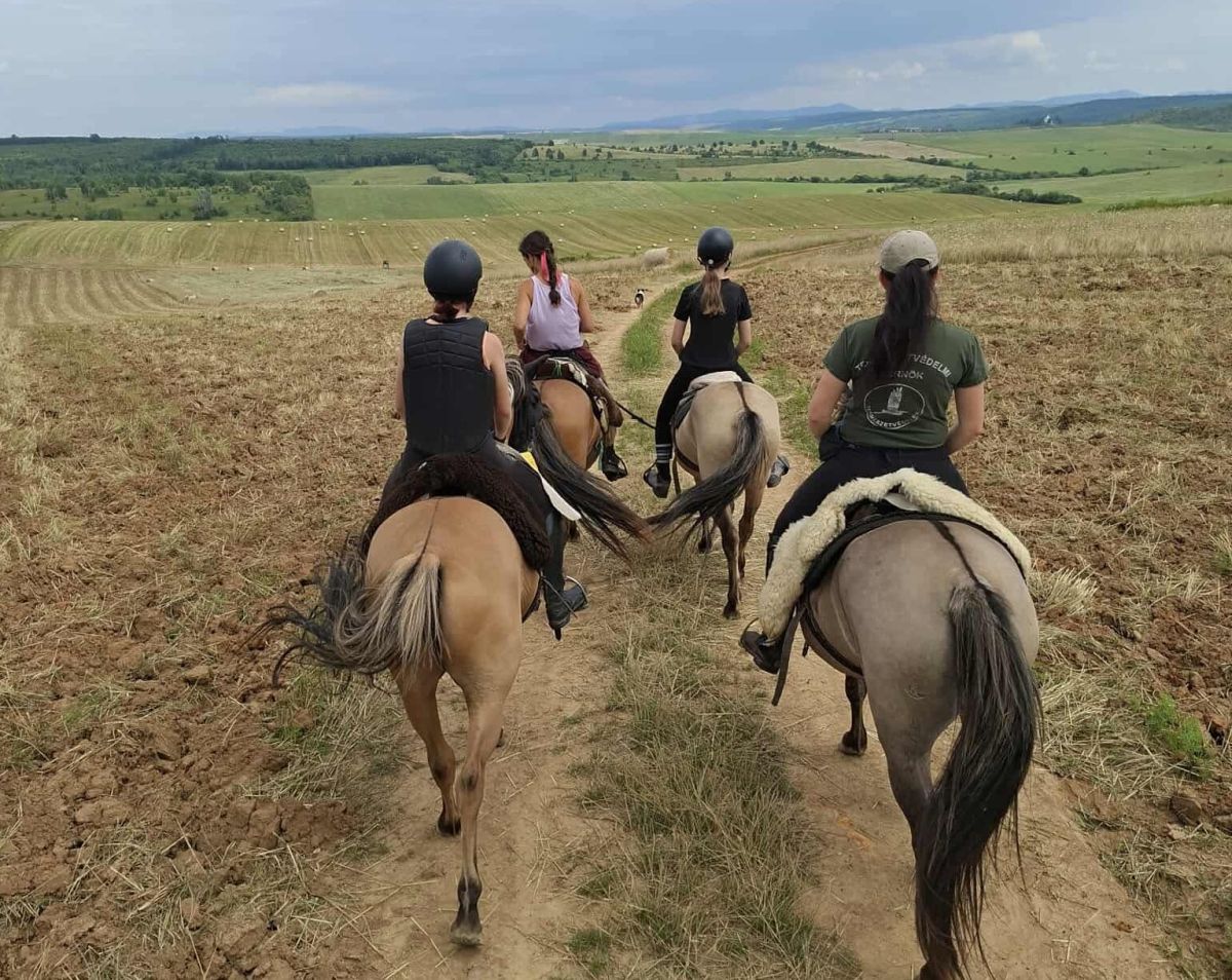 Day 7: From Szögliget, you will head to Szádvár, where a beautiful panorama awaits you. From there, you will continue through the Ménes-valley, past the Ménes-lake, where you can also swim with the horses, depending on the weather. Then you will visit Szelcepuszta, the Huzulen breeding farm in Jósvafő. In the afternoon, you will make your way home, crossing the border again through the hills and returning to the farm in Gombaszög.