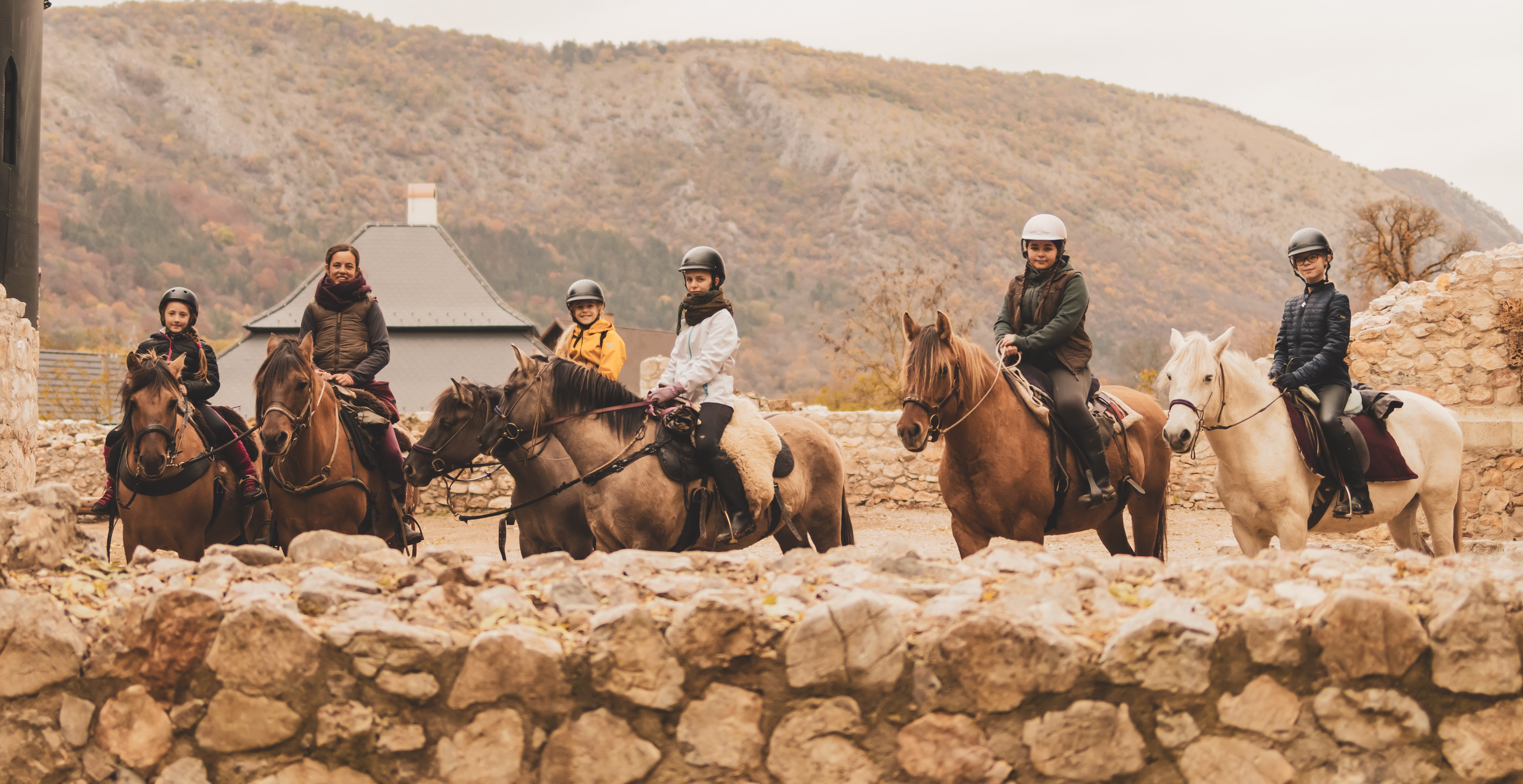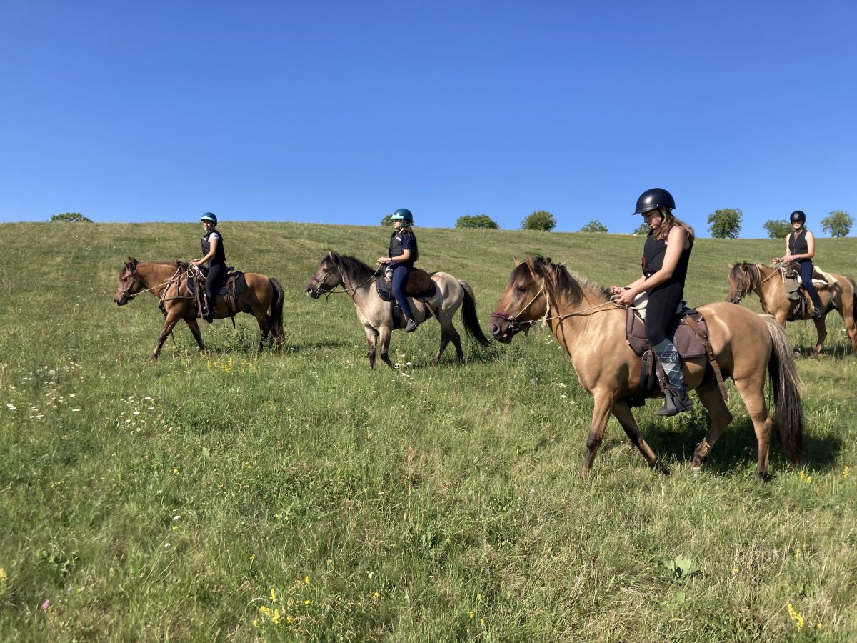 Kunfakó horses (similar to Huzulen). Most of them are born and raised on the farm and are well adapted to the varied terrain of the region. They live in herds on large, open pastures all year round, which keeps them healthy and resistant to all weather conditions. You ride both geldings and mares. All are relatively small, but they are strong mountain horses with a friendly and gentle character. This makes them ideal for both children and less experienced rider Height: 135–155 cm.