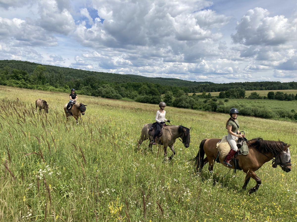 The Slovak Karst Horse Trail is a week-long Riding tour around the Slovak-Hungarian Karst. On tough, reliable Kunfakó horses, you will explore the most beautiful viewpoints, impressive caves, sinkholes, gorges, and deep forests in this unique landscape. The small, family-run farm has been breeding compact, versatile horses similar to Huzuls for many years. The Kunfakós are carefully trained for the trails. Their calm, friendly temperament makes them ideal for less experienced riders and rider – as well as for young people. Despite their small size, they are extremely enduring, sure-footed, and reliable, even in demanding mountain terrain. The ride begins in Slovakia and takes you across the border to Hungary on horseback. Along the way, you will learn about both cultures, their gastronomy, and the shared history of these regions. A riding experience that combines nature, adventure, and cultural discoveries.