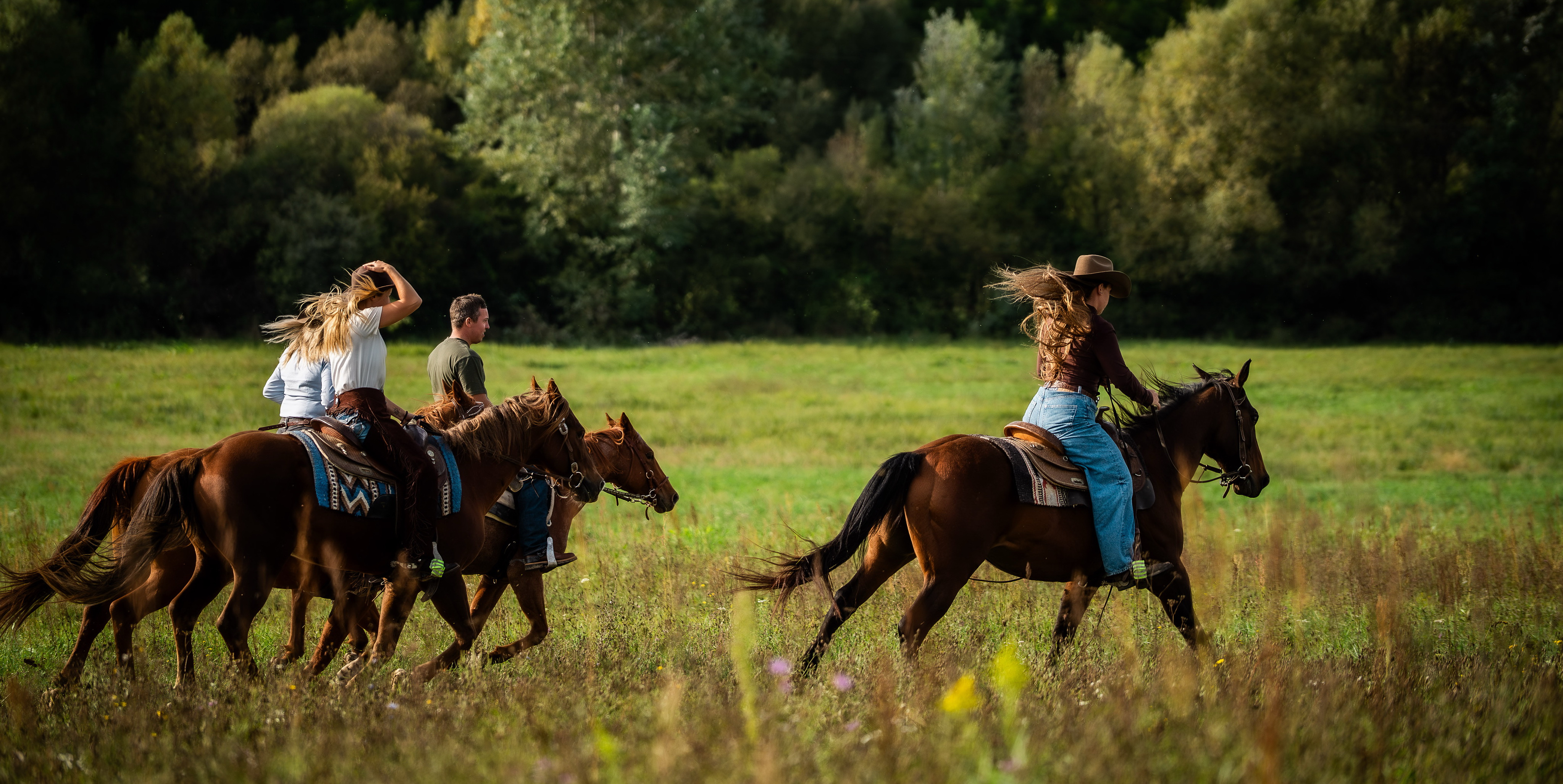 Riding vacations for western enthusiasts and guests who want to explore the beautiful countryside on horseback. The Ranch offers the opportunity to experience the tranquillity of nature and the harmony of country life at first hand. It is located in a rural, gently undulating area close to the Croatian border. The rides to lead take you through forests, across wide meadows along lakes and through tranquil villages - a new experience awaits you every day while you enjoy the freedom on safe, well-trained Quarter Horses. For experienced rider riders, the sandy trails offer many great gallops.